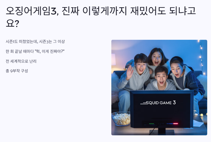 근데 이렇게 우리나라에서만 반응이 폭발한 게 아니라, 전 세계적으로 난리라더라고요. 특히 오징어게임3 몇부작인지 궁금해하는 친구들도 많았는데, 시즌3는 총 9부작이라고 하네요. 딱 보기 좋은 분량이죠?