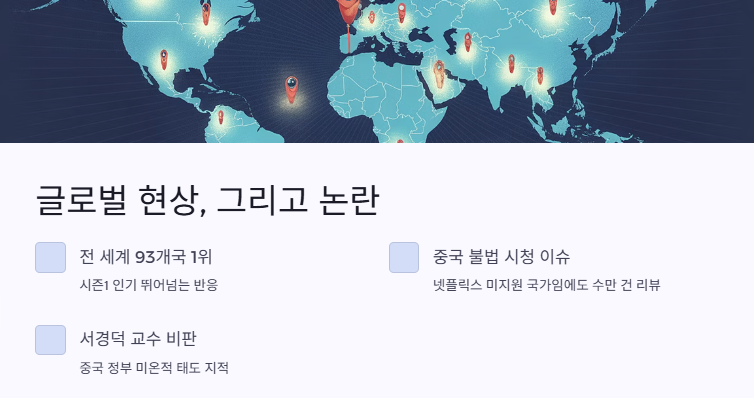 넷플릭스에서 공개되자마자 전 세계 93개국 1위를 기록한 오징어게임3는 시즌1의 인기까지 뛰어넘는 반응을 얻고 있어요. - 중국 불법 시청 이슈