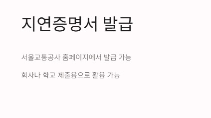 오늘 처음 알게 된 사실인데, 지하철 지연증명서는 서울교통공사 홈페이지에서도 발급받을 수 있대. 아니, 나 그거 진작 알았으면 회사나 학교에 제출할 수 있었을 텐데! 다음에 또 이런 일 생기면 꼭 발급 받아야겠어.