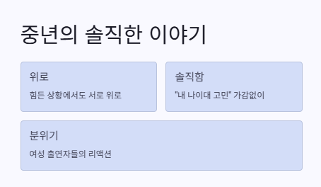 - 이혼 예능의 리얼 공감: 감정 공유와 힐링의 조화
