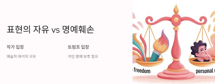 트럼프 초상화 사건이 재밌었던 건, 단순히 트럼프만의 문제는 아니었어요. ‘표현의 자유 vs 명예훼손’이라는 주제까지 연결됐거든요. 작가는 예술적 해석이라고 말했고, 트럼프는 본인의 명예를 지켜야 한다고 주장했어요. 이런 갈등은 앞으로도 계속 나올 것 같아요.