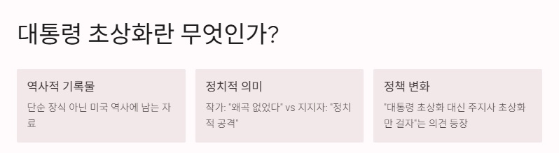트럼프 초상화 논란이 커진 건, 단순히 그림 하나 바꾼 게 아니라 공식 기록물이라는 의미가 크기 때문이에요. 대통령 초상화는 그냥 장식이 아니라 미국 역사에 남는 자료거든요. 그래서 어떤 이미지로 남느냐가 너무 중요해요.