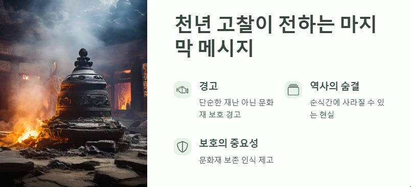 의성 운람사 화재는 단순한 재난이 아닌, 우리 모두에게 주는 경고입니다. 역사의 숨결이 머물던 공간이 순식간에 사라질 수 있다는 현실은 우리에게 문화재 보호의 중요성을 다시금 일깨워 줍니다.