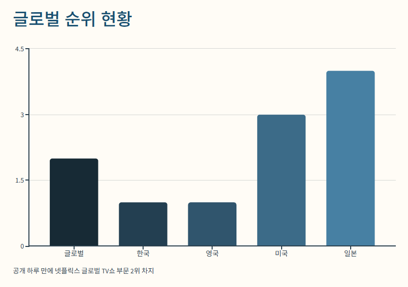 공개 하루 만에 넷플릭스 글로벌 TV쇼 부문 2위를 차지했어요.