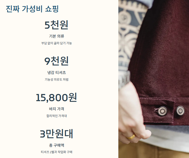 특히 저는 체험용으로 티셔츠 2벌이랑 작업화 하나 샀는데, 이게 전부해서 3만원대? 대박이죠. 옷 재질도 좋아서 금방 헤지지 않을 느낌이라 더 만족스러웠어요.