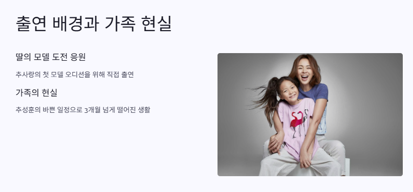 딸 추사랑의 모델 도전을 응원하기 위해 야노 시호가 스튜디오에 직접 출연한 배경.