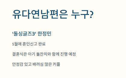 가장 궁금했던 부분이 바로 유다연남편이에요. '돌싱글즈3' 때부터 케미 좋다는 말 많았는데, 결국 진짜 커플로 이어졌더라구요. 혼인신고는 5월에 이미 마쳤고, 결혼식은 아기 돌잔치와 같이 한다고 해요. 이렇게 현실적인 계획도 팬들 입장에서 너무 보기 좋았어요. 안정감 있고, 배려심 많은 느낌이 물씬 나는 커플이라 진짜 응원하고 싶어요.