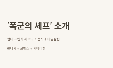 A. 타임슬립한 프렌치 셰프가 조선시대 폭군과 얽히는 판타지 로맨스입니다.
