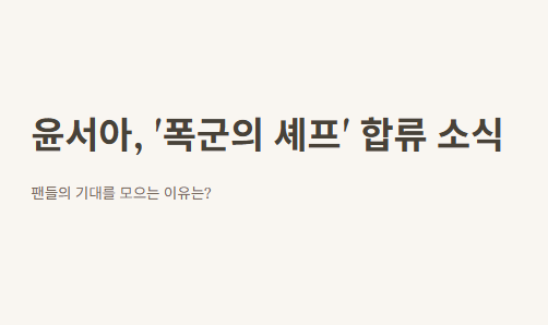 며칠 전 인스타 보다가 갑자기 뜬 윤서아 ‘폭군의 셰프’ 출연 소식 보고 깜짝 놀랐잖아! 평소에 ‘여신강림’이랑 ‘알고있지만’ 볼 때도 은근 연기 잘하는 배우라고 생각했는데 이번엔 사극 판타지라니, 넘 기대됨.